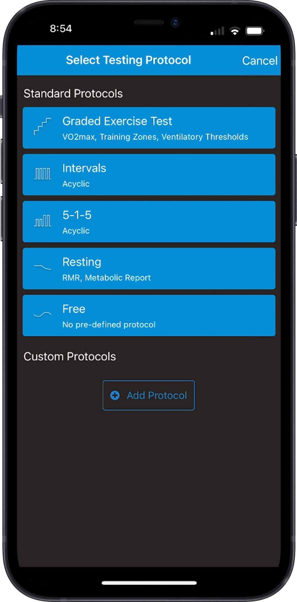 Free phone application guides you through customizable testing protocols.